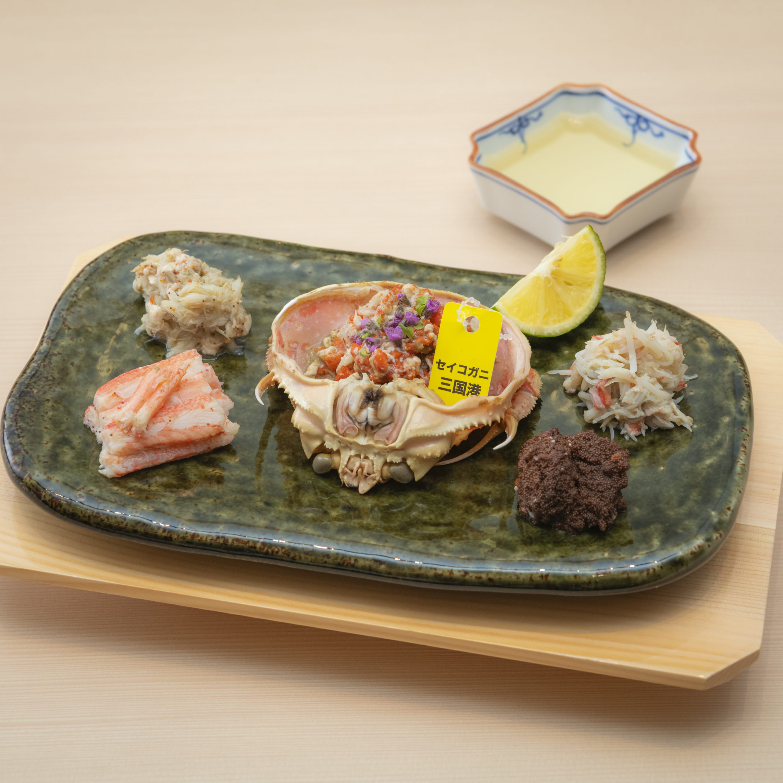 2026年1月から提供開始。せいこがにの内子、外子、味噌、足身、ほぐし身が付いた4点盛りセット。蟹を剥く手間が無く、それぞれの素材の持ち味をお楽しみいただけます。